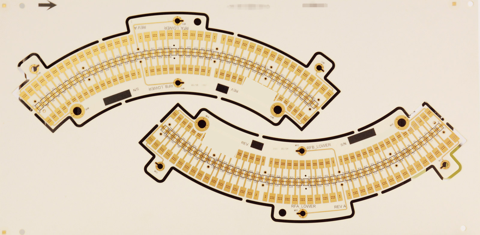該類PCB產(chǎn)品一般采用碳?xì)浠衔锘寤蛘逷TFE基板制作而成,層數(shù)一般在2~8層之間,在PCB表面布滿射頻線路,對線路蝕刻精度要求非常高,一般要求化學(xué)鎳金的表面處理。