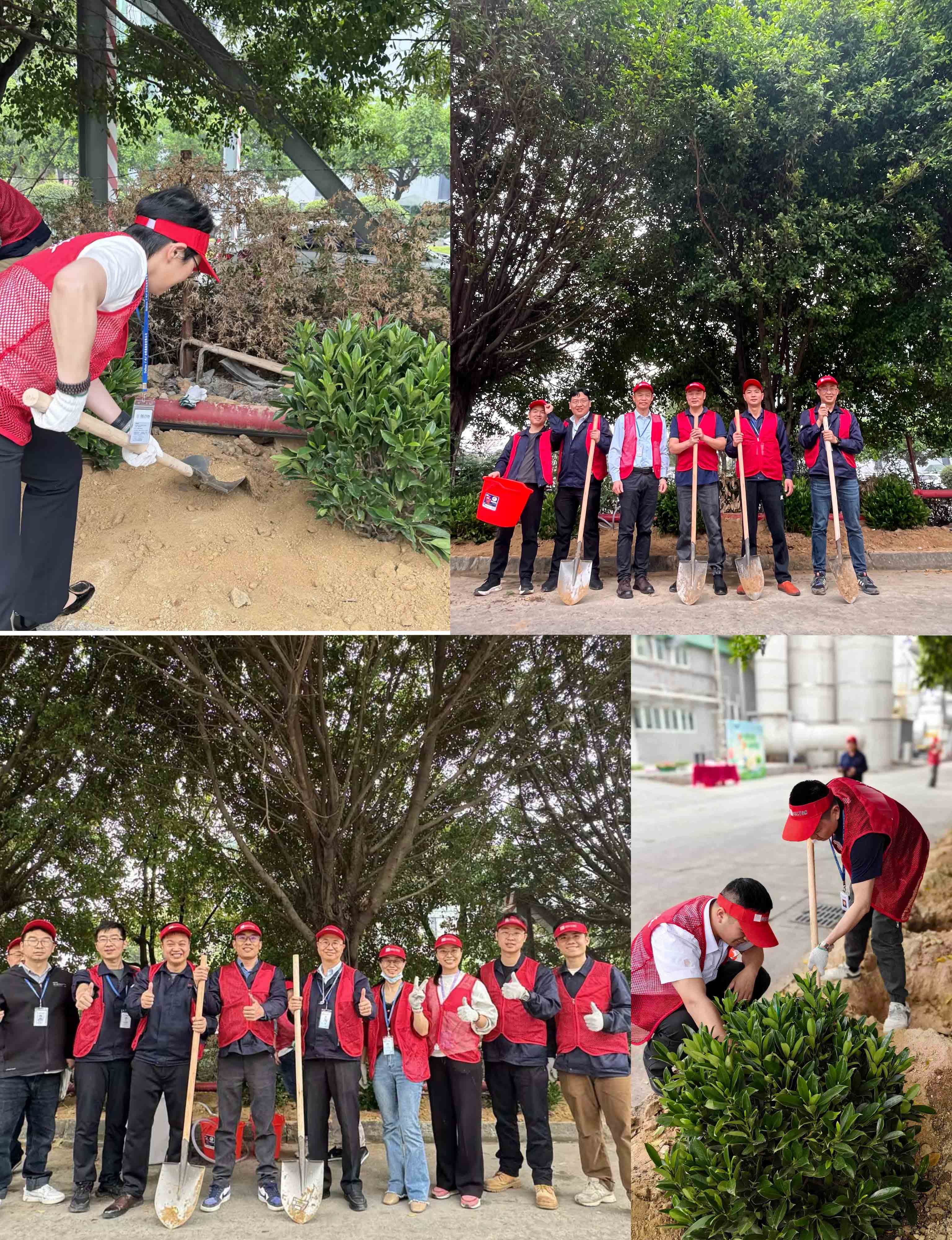 各中心有序領(lǐng)取馬甲、遮陽帽、手套、鐵鍬、水桶等植樹工具,開始挖樹坑,澆水、填樹苗、埋土、澆水等步驟,一步一步開始植起樹來;大家在一起,干勁十足,穩(wěn)穩(wěn)當(dāng)當(dāng)?shù)膶⒚恳活w小樹苗扎入土中,我們的期望將會和小樹苗共同成長。